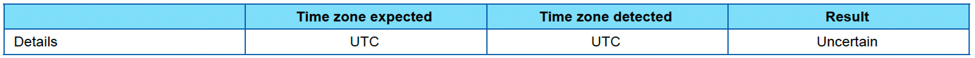 If the test fails, check your data and provide the correct time zone before further analyses.