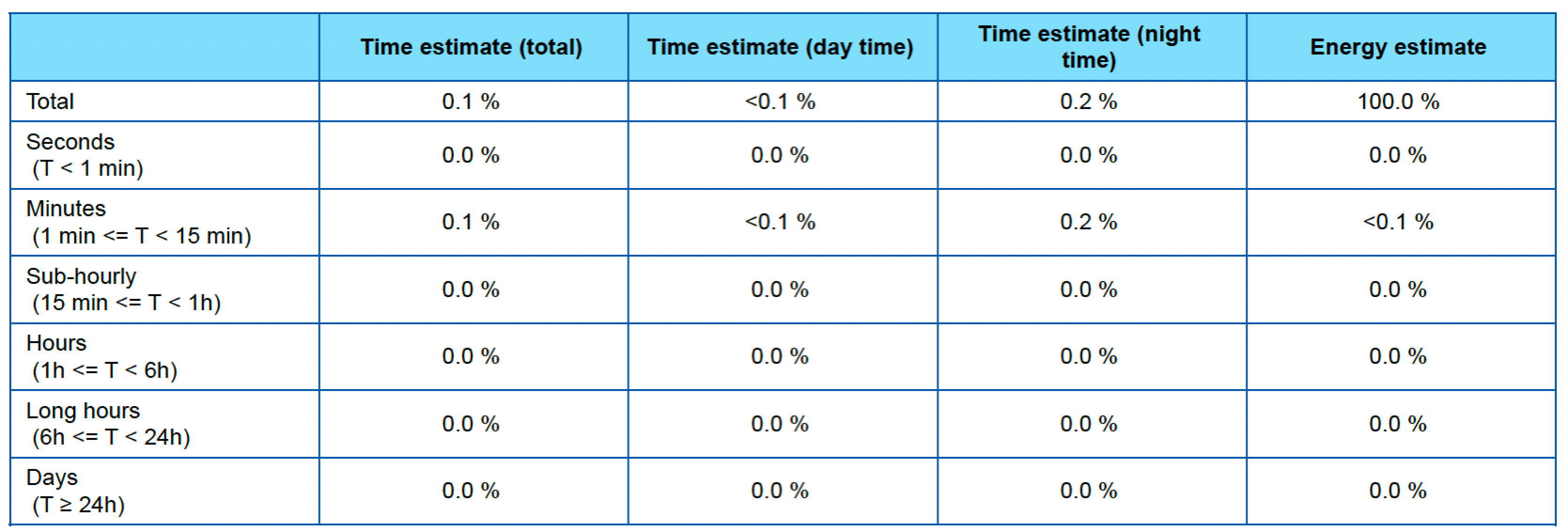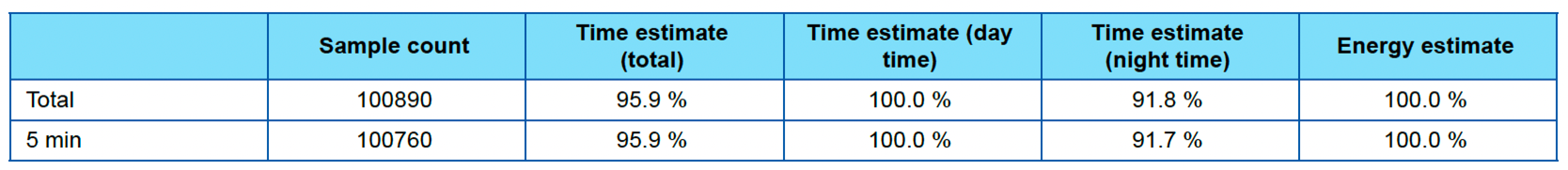 Data Availability tests report daytime and nighttime separately. Daytime values are also used to assess impact on the available solar energy metrics.