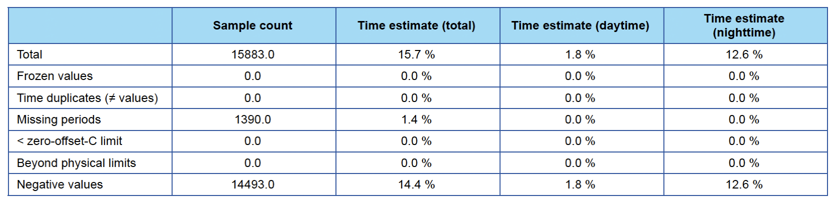Data Integrity Checks in EKO Q help you understand whether your dataset is complete, consistent, and physically sound to set a solid base for your analyses. The checks inspect general data structure, look for irregularities on a large scale, and summarize key informative metrics.