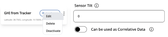 If you have a reliable correlative data as a CSV-like file, you can upload it as another sensor and follow the steps described in Configure reference GHI sensor above.