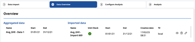 Once you successfully imported irradiance measurement data, look at it using Data Preview tab. Get immediate insights by just looking at the plots and numbers provided. Gaps in the data, large spurs, large time shifts, wrong units of measure, and certain misalignments are typically easy to visually spot here.