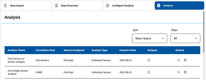 Proceed to Analysis Output tab. Locate your analysis and click Run () button.